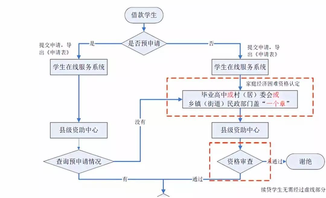 1.接到录取通知书的大学新生登录国家开发银行生源地助学贷款学生在线系统(https://sls.cdb.com.cn/)注册并按指引填写相关信息申请国家助学贷款,打印《申请表》,非建档立卡家庭子女、未经预申请的学生需携带申请表前往所在高中(中职学校)、村(居)委会、乡镇(街道)民政部门任一单位出具意见并加盖公章。
