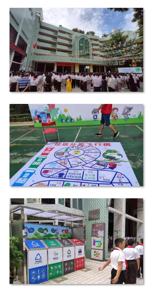 开学首日,白云区京溪小学的学生们迎来了一堂生动有趣的垃圾分类环保课。开学典礼上,学生代表宣读垃圾分类倡议书,号召大家争做环保小卫士,共同保护美好家园。京溪小学通过“课堂教学+互动游戏”的方式向学生们宣传垃圾分类知识和理念,让孩子们在寓教于乐中了解垃圾分类的重要性,掌握垃圾分类的方法。