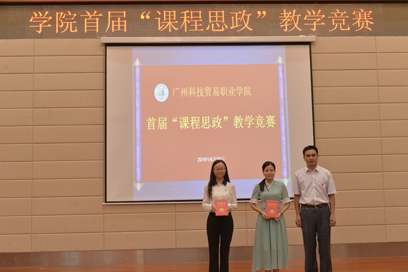 为深入贯彻习近平总书记在学校思想政治理论课座谈会上的重要讲话精神,全面推进学院课程思政教育教学改革,发挥各类课程育人作用,6月25日,广州科技贸易职业学院举办首届“课程思政”说课竞赛。竞赛邀请了广州番禺职业技术学院马克思主义院长曹群教授,广东轻工职业技术学院马克思主义学院副书记、副院长余展红教授,广州铁路职业技术学院马克思主义学院院长丁文胜教授担任专家评委。