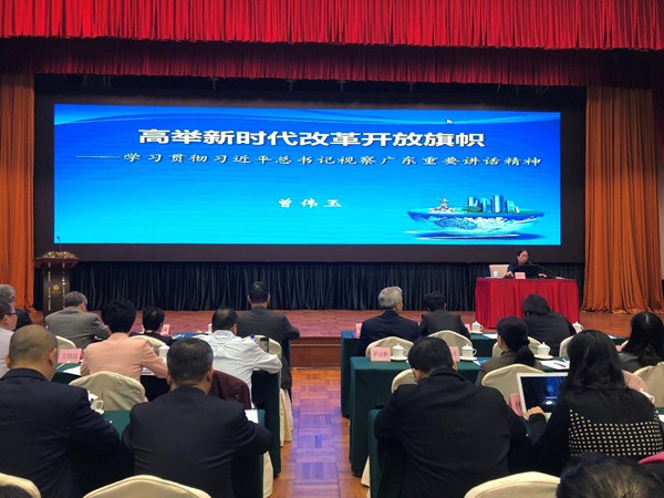 26日上午,市委宣传部副部长,市社科联党组书记、主席曾伟玉作《学习贯彻习近平总书记视察广东重要讲话精神》主题辅导报告。曾部长结合习近平总书记在庆祝改革开放40周年大会上的重要讲话精神,高屋建瓴、旁征博引,以大量详实的数据和丰富的案例,阐述了深刻认识习近平总书记视察广东重要讲话精神的重大政治意义、重要现实意义和深远历史意义,指出了要进一步增强学习贯彻的自觉性和坚定性。