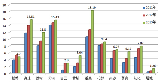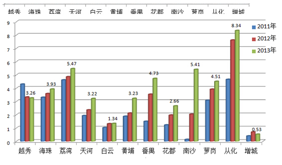 | 越秀 | 2011 | 4.3 | 3.8 | 1.1 | 0 | 64 | 7509 | 0 |