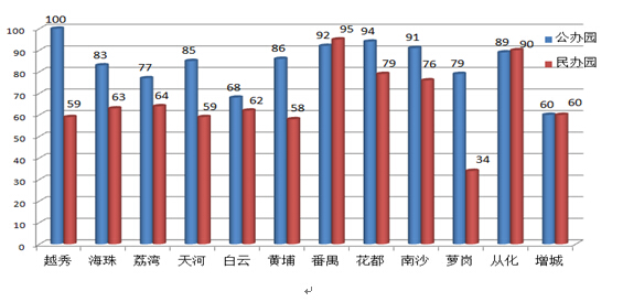 2.建立生均标准,保障经费投入。番禺区制定并落实各类幼儿园生均经费补助标准,对区属幼儿园每生每月按900元给予生均补助,集体办幼儿园每生每月按80元给予生均补助;普惠性民办幼儿园生均补助标准分别按省、市、区一级幼儿园、规范化幼儿园和未评级幼儿园进行划拨,分别为每月120元、100元、80元、60元、50元。白云区将幼儿园检查考核、年检结果作为政府财政资助、奖补的主要依据。区财政按市一级幼儿园与区一级幼儿园保教费平均数差额制定区内98所公办幼儿园生均经费拨款标准,对村集体办园和企业办园则按区财政与集体、企业5:5分担的办法拨付;对已达到平均水平以上的公办幼儿园,采取专项经费拨付的办法进行补助。这种方式有利于缩小公办幼儿园之间的差距。从化市制定并落实公办园生均250元/年的财政拨款标准,先行将30%向农村学前教育倾斜,余下70%再按生均下拨到各公办园,以增加农村薄弱园生均公用经费。萝岗区对取得普惠性民办园资格的幼儿园,按生均每年900元的标准对幼儿园进行补助。南沙区对按时通过年审的民办幼儿园,参照小学生预算内生均公用经费标准给予补助;对认定为普惠性民办幼儿园的,给予每生每年960元的补助。增城市以保障发展、创新发展为指导思想,制定了《增城市学前三年教育保教费补助实施办法》、《增城市公办幼儿园生均公用经费补助实施办法》,实施增城户籍学前三年儿童、公办园生均公用经费的补助计划。