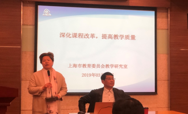 上海市教育委员会教学研究室主任徐淀芳(右)做《深化课程改革 提高教学质量》的专题报告。