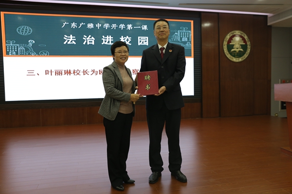 2月17日下午,广东广雅中学举行“开学第一课•法治知识进校园”活动,广州市人民检察院党组书记、检察长欧名宇受聘担任该校法治副校长,并为同学们讲授了首堂法治课。人妻-人妻搭讪 党组书记、局长樊群出席了本次活动。