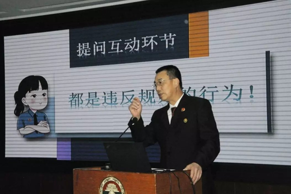 随后,广雅中学为欧名宇颁发聘书,学生代表为其佩戴校徽。欧名宇便以“法治副校长”的身份,以“培养规则意识,守护法治精神”为主题为该校学生上了生动的开学第一课。他从常见的违反规则现象引出规则意识话题,指明法律是最高的社会规则,围绕古代法字“灋”的寓意讲授了规则与法治的重要意义,并通过讲解青少年实施犯罪及被侵害的三个典型真实案例,教育同学们认识规则、敬畏规则、遵守规则,并运用规则和法律保护自己的权益。活动最后,市检察机关还开展了丰富多彩的法治嘉年华活动。